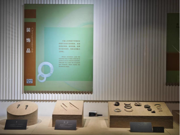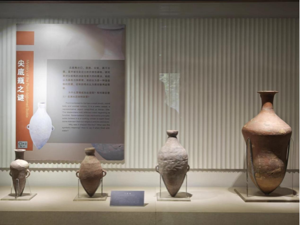 半坡遗址出土文物展厅包含五个单元,展示了半坡文化的魅力。第一单元“青青河畔”,介绍了半坡人与生态环境的关系,展示了动物骨骼和骨器。第二单元“生命之诗”,讲述了半坡人的劳动生产,包括农作物种植、渔猎和采集等经济活动,以及出土的生产工具。第三单元“田园牧歌”,描绘了半坡人的日常生活,包括修建房屋、制作陶器等,展示了丰富的陶器种类和纹饰。第四单元“心灵神韵”,探讨了半坡人的审美意识,展示了各种材质的装饰品和不同的功能。第五单元“隐秘玄机”,提到了半坡文化研究中存在的未解之谜,如刻画符号之谜、人面鱼纹之谜和尖底瓶之谜等。