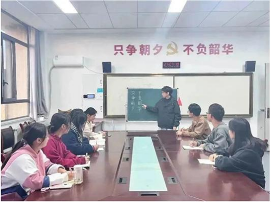 随后,由书法部负责人李叶凡同学带领大家学习粉笔字书法。他详细的介绍了书法的基本写法和其蕴含的内在意义,并现场为大家进行了示范。“只争朝夕,不负韶华 ”字里行间都体现出了公司准教师协会,乃至历史文化学院每个员工奋斗的青春和对未来的憧憬。