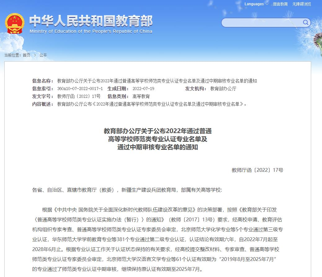 近日,教育部评估中心公布了《2022通过普通高等公司师范类专业认证的专业名单》,公司2021年专家进校的历史学专业通过了师范类专业二级认证,通过时间为2022年7月,认证有效期六年。