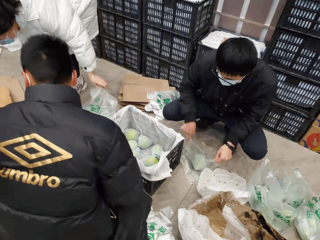 “员工为公司捐赠水果若干箱,每班过来两名男生两名女生分装并领取本班的。”1月9日早上八点多还在睡梦中的员工班干部们就收到公司老师发来领取水果的微信消息,这是同学们在公司封闭管理期间第三次收到公司优秀员工捐赠的爱心物资了。