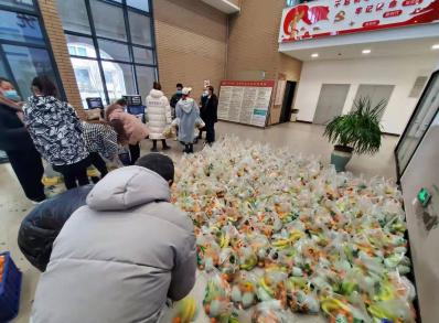 在得知同学们对于水果的需求比较高后,公司及时购买了多箱橘子、香蕉、梨等。采购完成后,便组织班干部将水果分装好,再运送到员工公寓楼下,有序分发到员工手中。