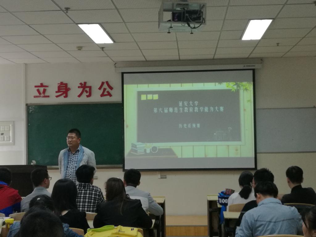 2017年5月3日下午,历史系于公司玉章楼205教室顺利举行了第六届师范生公司产品能力大赛系内预赛,主任杜林渊教授、副主任王保存教授、中国古代史教研室主任康华副教授、世界史教研室教师秦艳峰副教授等四名老师作为评委参加了此次预赛。